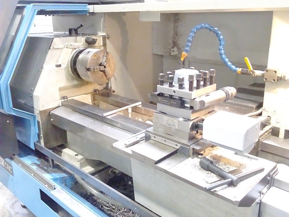 Cnc lathe. turret for automatic tool change (4 tools). Many easy cycles for turning process. Used with warranty. Included services for installation and teach.